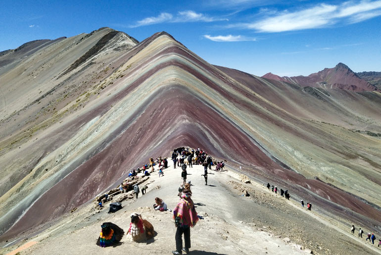 GEOGRAPHY: The area of the Vinicunca Mountain and The Red Valley is located in the Andes mountain range, specifically in the eastern Andes of southern Peru within the Vilcanota mountain chain, which is made up of valleys, deep valleys and high plains. It is located within the administrative territory of the Cusco region between the districts of Cusipata in the province of Quispicanchis and the district of Pitumarca in the province of Canchis.